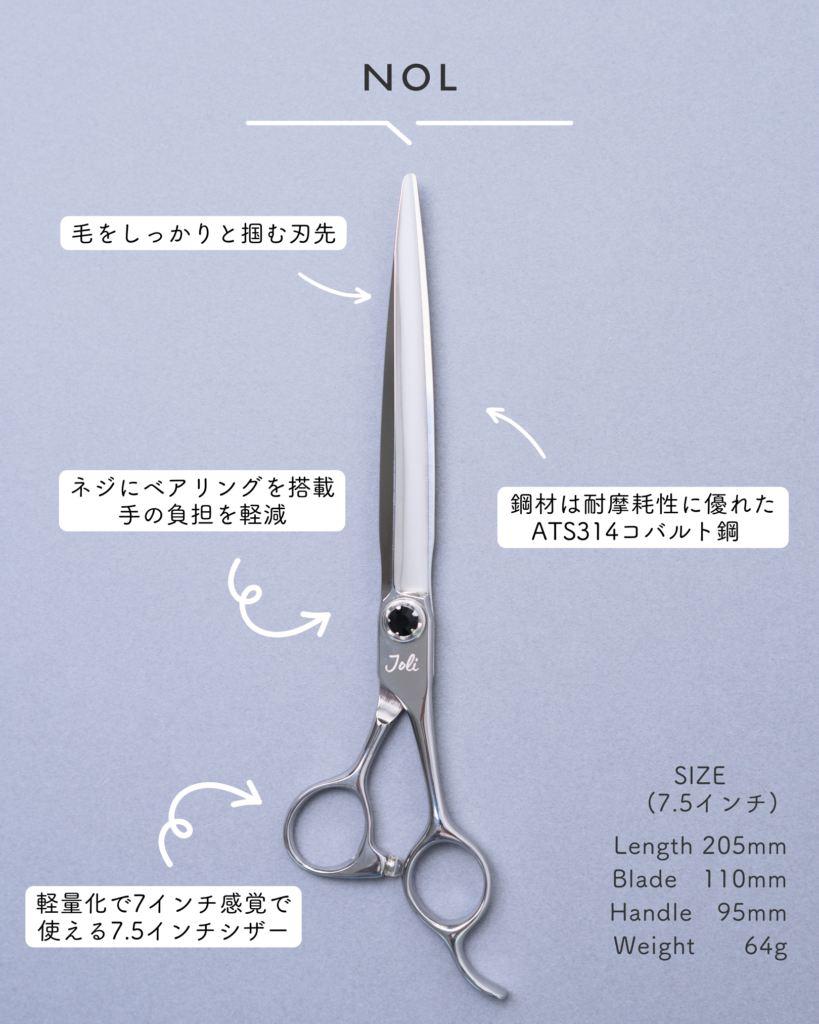 そういったハサミが大きくなることによる使用感の低下を感じさせないのが7.5インチストレートシザーの「NOL」の特徴になります。