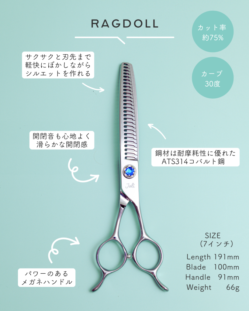 「RAGDOLL」はカーブ角度30度のカーブブレンディングシザーになります。